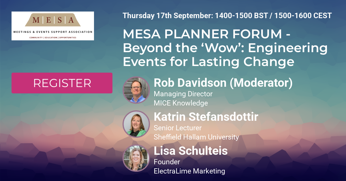 Join us for the MESA September 2026 Planner Forum! Thursday 17th September: Beyond the ‘Wow’: Engineering Events for Lasting Change